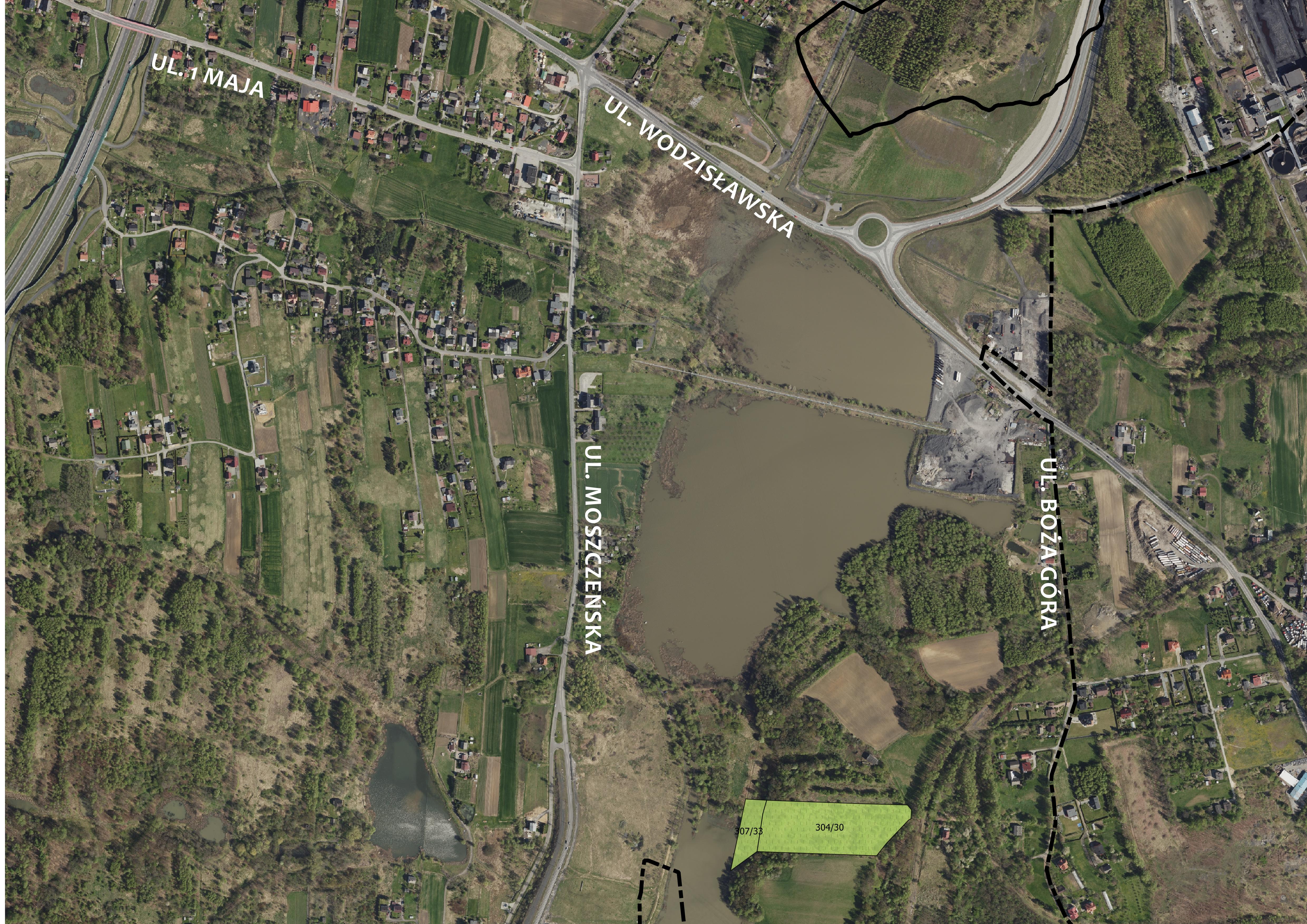Część nieruchomości rolnej, dla której prowadzona jest księga wieczysta nr GL1W/00053833/5 stanowiąca własność Gminy Mszana oznaczona w ewidencji gruntów jako działka nr 847/11 o pow. 1,2059 ha położona w gminie Mszana, obręb ewidencyjny Połomia.