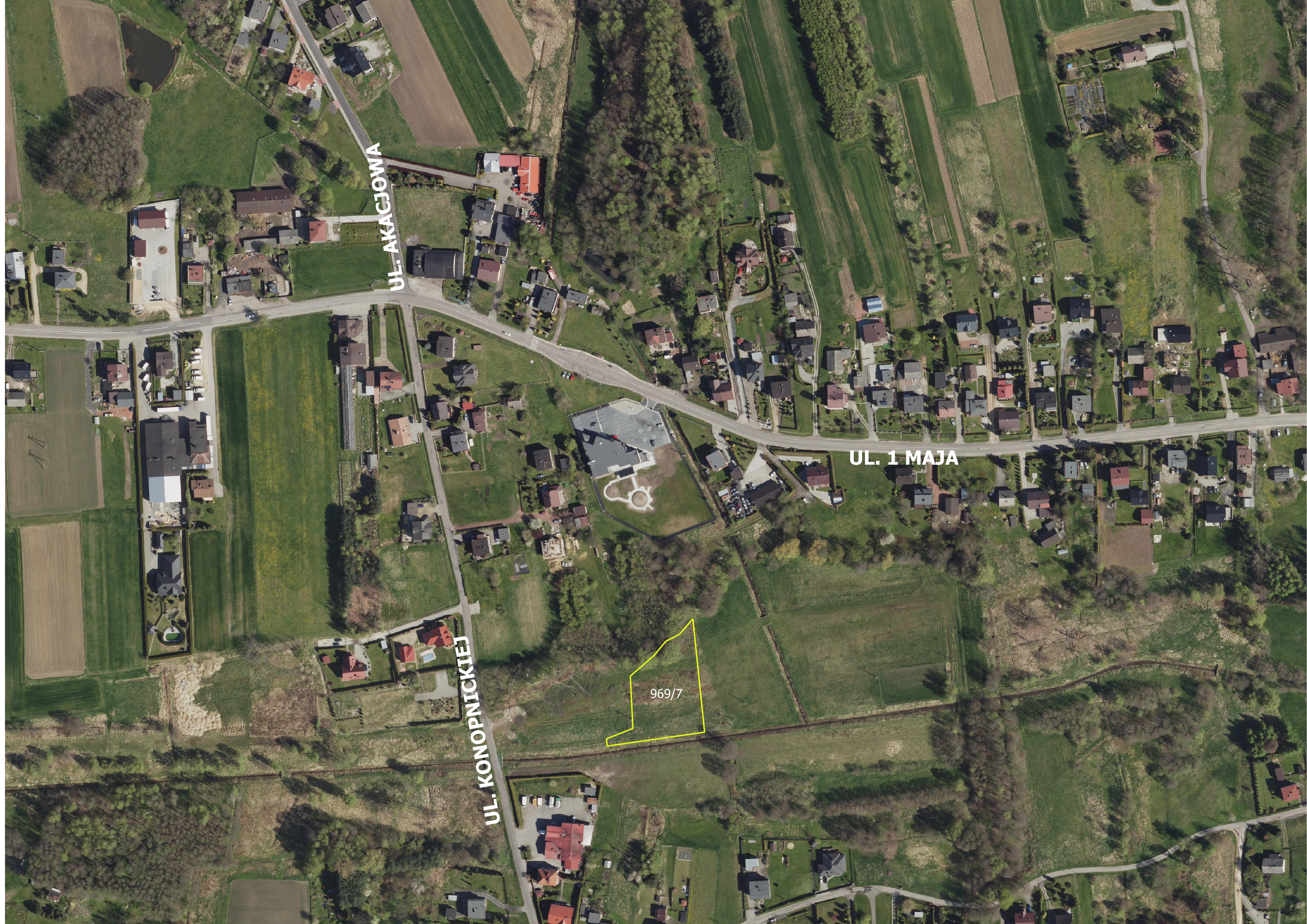 Działka nr 969/7 o powierzchni 0,2799 ha położona w Mszanie w rejonie ul. Konopnickiej